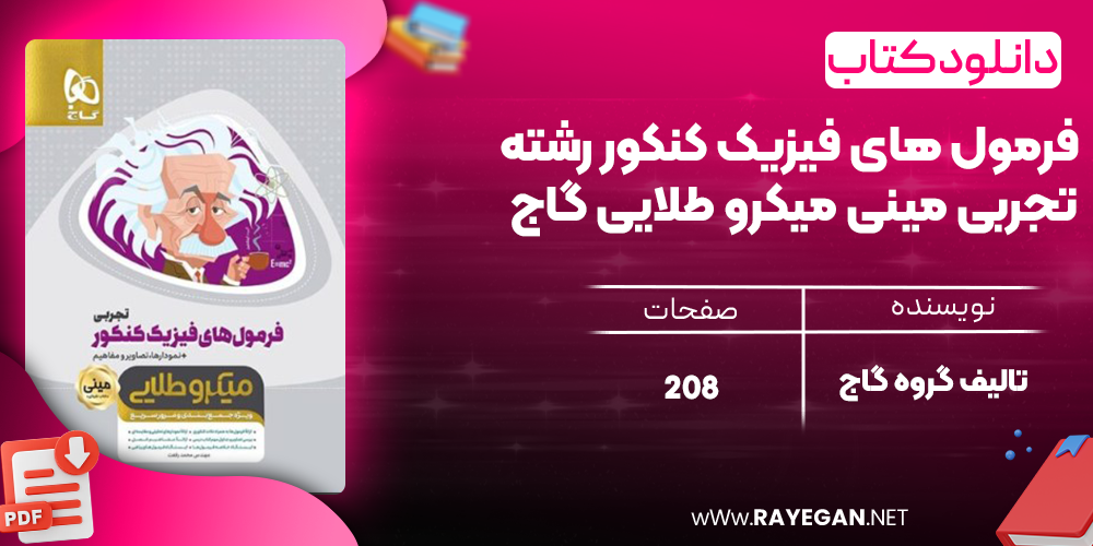 وب سایت فروشگاه رایگان پی دی اف فرمولهای فیزیک کنکور رشته تجربی مینی میکرو طلایی گاج یکی از آثار برجسته و معتبر در حوزه ی آموزش فیزیک به شمار می رود. این کتاب به طور جامع و عمیق به بررسی فرمولها و مفاهیم کلیدی فیزیک کنکور می پردازد و به دانشآموزان و معلمان، یک منبع ارزشمند و معتبر ارائه می دهد. در سایت رایگان نت با ما همراه باشید.