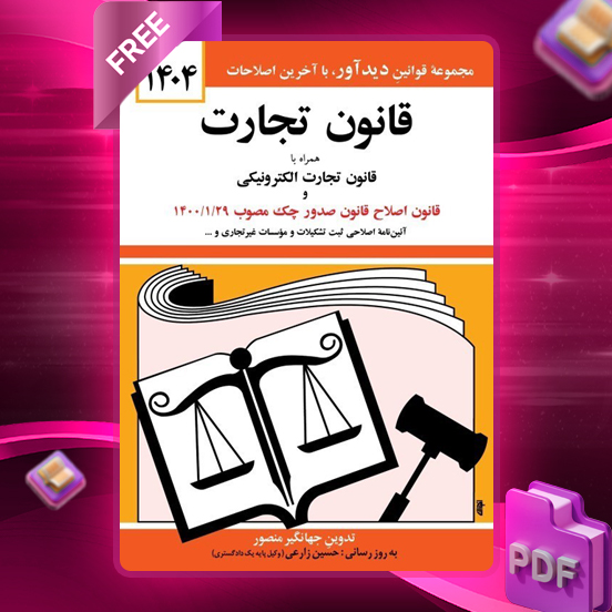 وب سایت فروشگاه رایگان پی دی اف کتاب قانون تجارت را در 342 صفحه جهت مطالعه شما عزیزان تهیه کرده است. کتاب «قانون تجارت» نوشته جهانگیر منصور به بررسی جامع قوانین و مقررات مرتبط با تجارت می پردازد و هدف آن آموزش اصول حقوقی و چارچوب های قانونی حاکم بر فعالیت های تجاری در ایران است.. در سایت رایگان نت با ما همراه باشید.