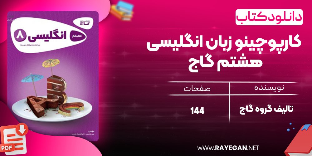 وب سایت فروشگاه رایگان پی دی اف کتاب کارپوچینو زبان انگلیسی هشتم گاج یکی از آثار برجسته و معتبر در حوزه‌ ی زبان انگلیسی به شمار می‌ رود. این کتاب به طور جامع و عمیق به بررسی مفاهیم کلیدی زبان انگلیسی برای دانش‌آموزان هشتم می‌ پردازد و به دانش‌آموزان و معلمان، یک منبع ارزشمند و معتبر ارائه می‌ دهد. در سایت رایگان نت با ما همراه باشید.