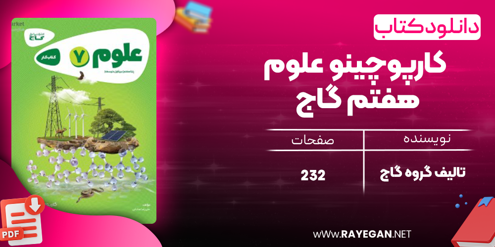 وب سایت فروشگاه رایگان پی دی اف کتاب کارپوچینو علوم هفتم یکی از آثار برجسته و معتبر در حوزه ی آموزش علوم به شمار می رود. این کتاب به طور جامع و عمیق به بررسی مباحث علوم پایه هفتم می پردازد و به دانشآموزان، معلمان و علاقه مندان به این رشته، یک منبع ارزشمند و معتبر ارائه می دهد. در سایت رایگان نت با ما همراه باشید.