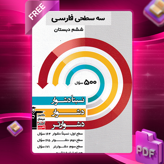 وب سایت فروشگاه رایگان پی دی اف کتاب سه سطحی فارسی ششم دبستان سطوح دشواری متنوع: سوالات کتاب در سه سطح “نسبتاً دشوار”، “دشوار” و “دشوارتر” طبقه‌بندی شده‌اند تا پاسخگوی نیازهای طیف وسیعی از دانش‌آموزان با سطوح تحصیلی بالا باشد. این کتاب به طور ویژه برای دانش‌آموزانی طراحی شده است که در مدرسه نمرات بین ۱۴ تا ۲۰ کسب می‌کنند و یا در آزمون‌های کانون فرهنگی آموزش، تراز بالای ۵۰۰۰ دارند. در سایت رایگان نت با ما همراه باشید.