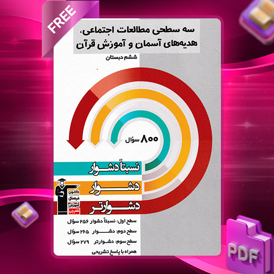 وب سایت فروشگاه رایگان پی دی اف کتاب سه سطحی مطالعات اجتماعی، هدیه های آسمان و آموزش قرآن ششم دبستان این مجموعه شامل 300 سوال شناسنامهدار در درس مطالعات اجتماعی، 250 سوال شناسنامهدار در درس هدیههای آسمان، و 250 سوال شناسنامهدار در درس آموزش قرآن است. همچنین، 256 سوال نسبتاً دشوار، 265 سوال دشوارتر و 279 سوال با سطح سختی بالاتر در این مجموعه وجود دارد. در سایت رایگان نت با ما همراه باشید.