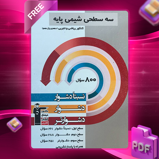 وب سایت فروشگاه رایگان پی دی اف کتاب سه سطحی شیمی کنکور پایه رشته ریاضی و تجربی اول اینکه، سطحبندی دقیق سوالات، باعث شده تا نیمی از دانشآموزان عزیز – یعنی آنهایی که در مدرسه نمرات 14 تا 20 میگیرند و در آزمونهای کانون تراز بالای 5000 دارند – مخاطب اصلی این کتاب باشند. پس اگر جزو این دسته هستید، تبریک! این کتاب دقیقاً برای شماست. در سایت رایگان نت با ما همراه باشید.